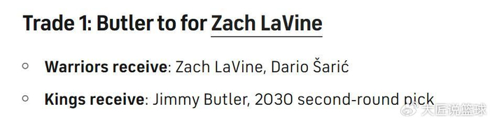独行侠得到:巴特勒+库明加+希尔德+26年受保护首轮。